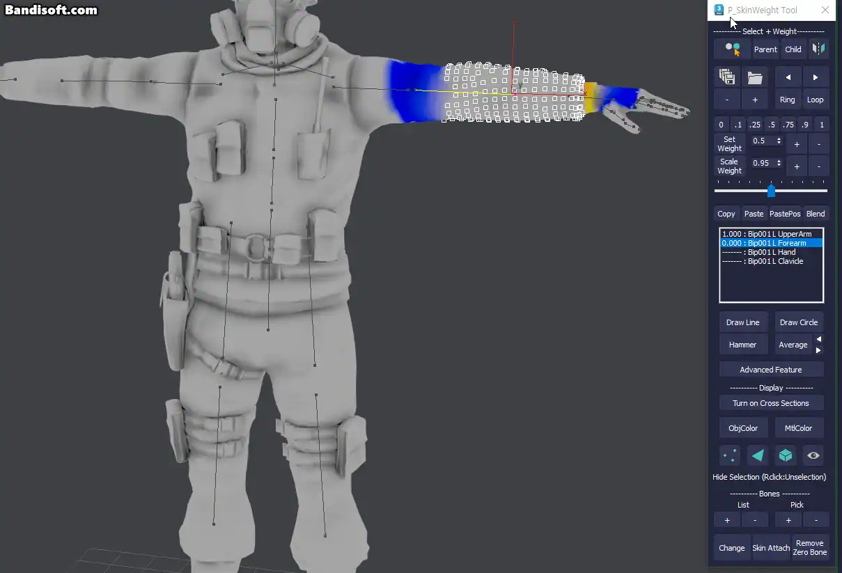 This script enhances the functionality of the 'Weight Tool' in the Skin modifier.